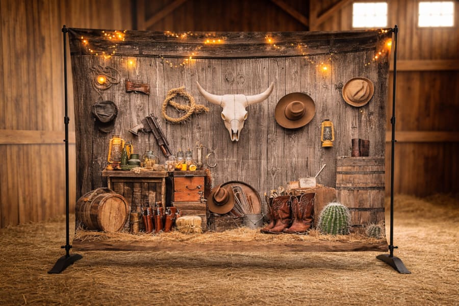 Add the perfect Western theme to your event with our Wild West backdrop hire, available alongside our popular rodeo bull hire in Derby, Nottingham, Burton upon Trent, Uttoxeter and Ripley. This high-quality rustic barn-style backdrop is ideal for creating a true cowboy atmosphere at birthday parties, corporate events, school fun days, weddings and country-themed celebrations.