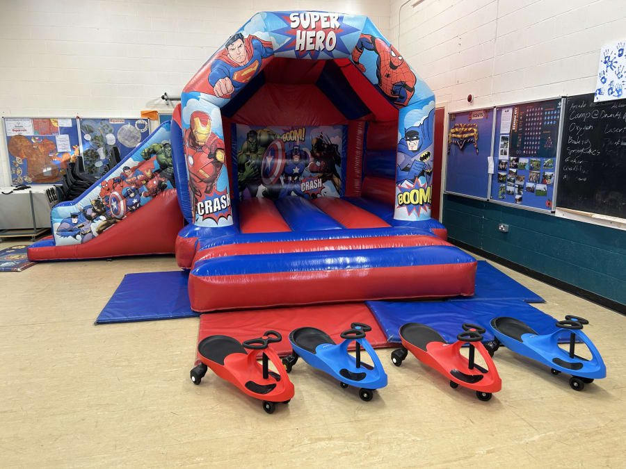 Our Super Heroes With Slide Party Package is the ultimate party solution for birthdays, school events and celebrations across Derby.